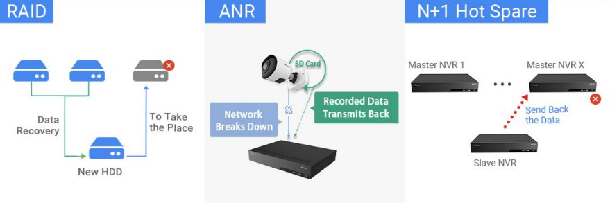 La série se distingue par ses fonctionnalités avancées, garantissant une expérience sans heurt et conviviale. Le transcodage, alimenté par des capacités CPU robustes, garantit une lecture vidéo fluide, même dans des conditions de réseau difficiles. Avec de solides capacités de décodage et d’affichage 4K, ces NVR décodent de manière synchronisée jusqu’à 4-CH 4K UHD et 16-CH 1080P, offrant une surveillance vidéo détaillée en temps réel. La conception conviviale du NVR s’étend à des fonctions telles que la Lecture Facile, la Sauvegarde Facile, la Gestion De Fichiers et la Configuration Facile. Chaque fonctionnalité est conçue pour améliorer la convivialité, en veillant à ce que même les fonctionnalités les plus avancées soient facilement accessibles. Enfin, la stratégie Hot Spare N+1 ajoute une couche supplémentaire de redondance. Cela garantit un enregistrement continu, élimine les temps d’arrêt et constitue une approche standard dans les systèmes critiques tels que les centres de données, les fermes de serveurs et les systèmes de stockage. En empêchant les perturbations causées par des pannes matérielles, cela améliore considérablement la fiabilité globale du système.