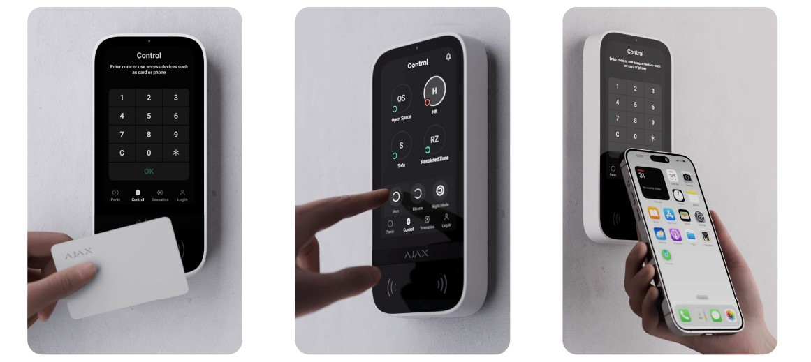 Le Ajax KeyPad TouchScreen est un clavier sans fil convivial et riche en fonctionnalités, conçu pour améliorer le contrôle et la fonctionnalité de votre système de sécurité Ajax. Armez et désarmez votre système de sécurité Ajax d'une simple pression sur l'interface intuitive de l'écran tactile. L'écran tactile du KeyPad vous permet également de visualiser l'état de sécurité actuel de l'ensemble de votre système, y compris l'état des portes, des fenêtres et des autres dispositifs connectés. Créez des comptes utilisateurs avec différents niveaux d'accès, ce qui vous permet d'accorder des autorisations spécifiques aux membres de votre famille, au personnel de sécurité ou au personnel de nettoyage.