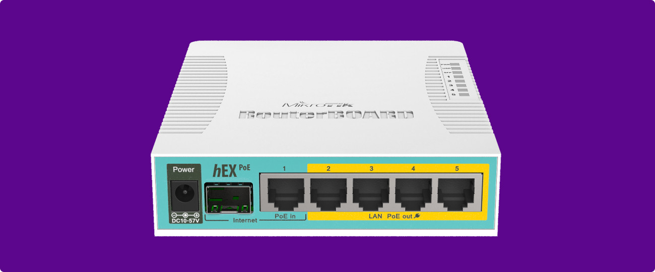Le routeur hEX PoE change la donne avec sa fonctionnalité Power over Ethernet (PoE). Avec quatre ports de sortie 802.3af/at PoE, vous pouvez facilement alimenter et connecter des périphériques compatibles PoE, tels que des points d'accès et des caméras vidéo, via des câbles Ethernet. Dites adieu à l'encombrement causé par plusieurs adaptateurs secteur et autres câbles – le hEX PoE simplifie la configuration de votre réseau tout en offrant une gestion efficace de l'alimentation.