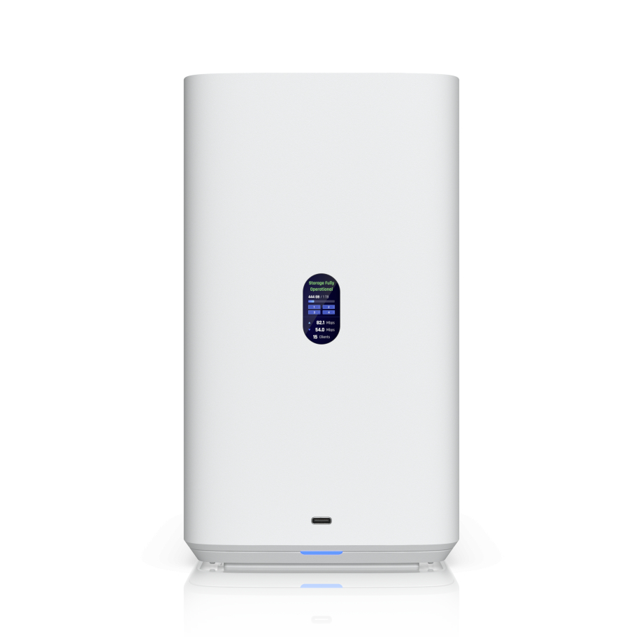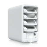 L'Ubiquiti UNAS 4 repose sur une plateforme matérielle fiable, conçue pour offrir des performances constantes et un fonctionnement efficace. Il est équipé d'un processeur quadricœur ARM Cortex A55 cadencé à 1,7 GHz, associé à 4 Go de mémoire système. Cette configuration permet une gestion fluide de multiples tâches, notamment les transferts de fichiers, les sauvegardes et les services d'applications. L'appareil fonctionne principalement en PoE+++, avec un adaptateur de 90 W inclus pour faciliter le déploiement. Avec une consommation électrique maximale de 90 W, il maintient un équilibre efficace entre performances et consommation d'énergie. Le boîtier compact, fabriqué en polycarbonate durable, garantit une fiabilité à long terme tout en conservant un encombrement global minimal.