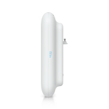 Malgré sa construction robuste, l'appareil reste compact et maniable, avec un poids d'environ 1,2 kg (1,33 kg avec son support). L'alimentation est fournie via PoE+, ce qui simplifie le déploiement en supprimant le besoin d'une infrastructure d'alimentation distincte. L'appareil dispose également d'une interface Ethernet RJ45 standard, permettant une intégration aisée dans les environnements réseau existants. La visibilité opérationnelle est améliorée grâce à des voyants LED intuitifs, indiquant notamment l'état d'alimentation et la puissance du signal maillé, ce qui permet un diagnostic rapide sur le terrain. La conformité aux normes et certifications internationales garantit en outre la fiabilité et la compatibilité dans toutes les régions. Dans l'ensemble, l'U7 Pro Outdoor allie une conception robuste à des options de déploiement flexibles, ce qui en fait un choix fiable pour les réseaux sans fil professionnels en extérieur.
